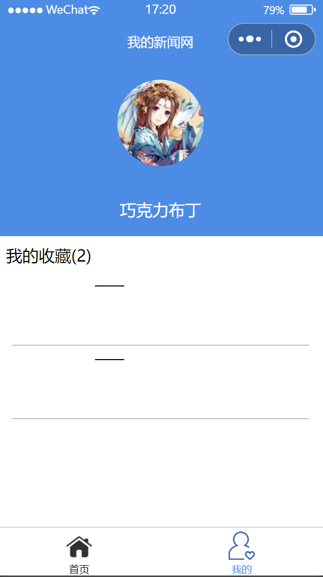 my.js:data中临时收藏夹新闻数据newsList、临时昵称数据nickName以及临时头像路径地址src。
