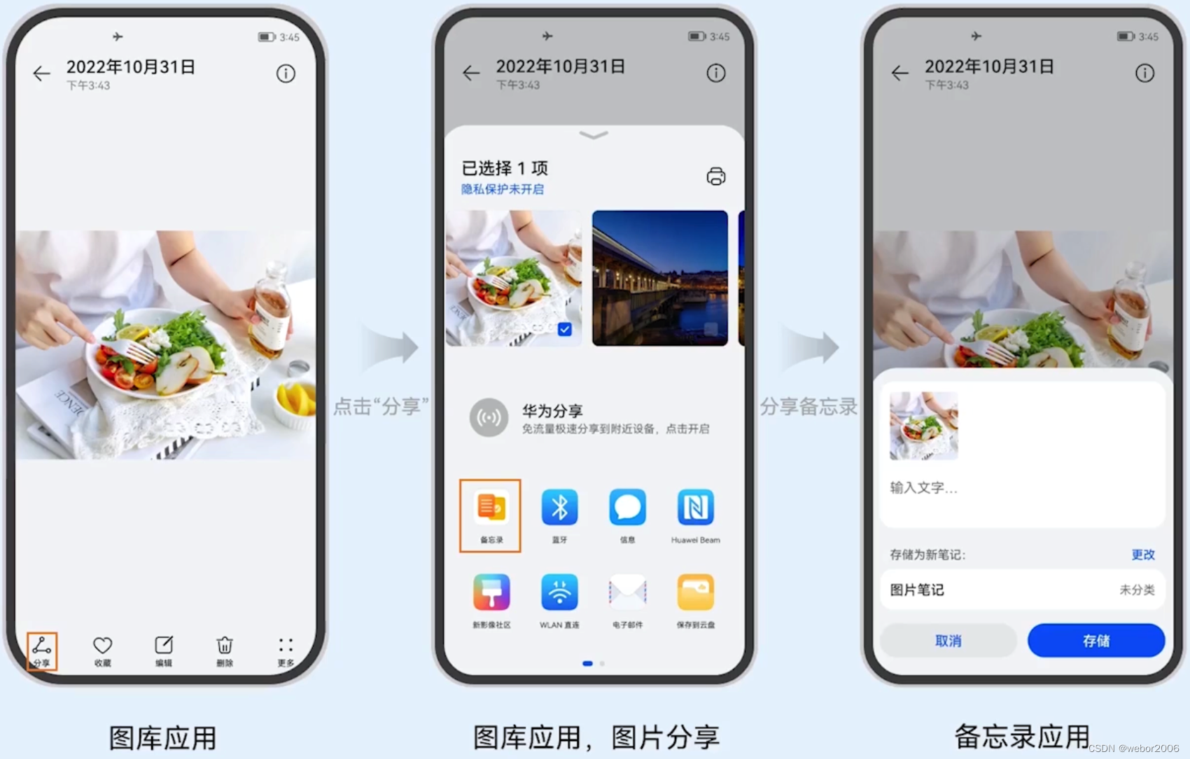 比如图库应用中可以将图片分享到备忘录: