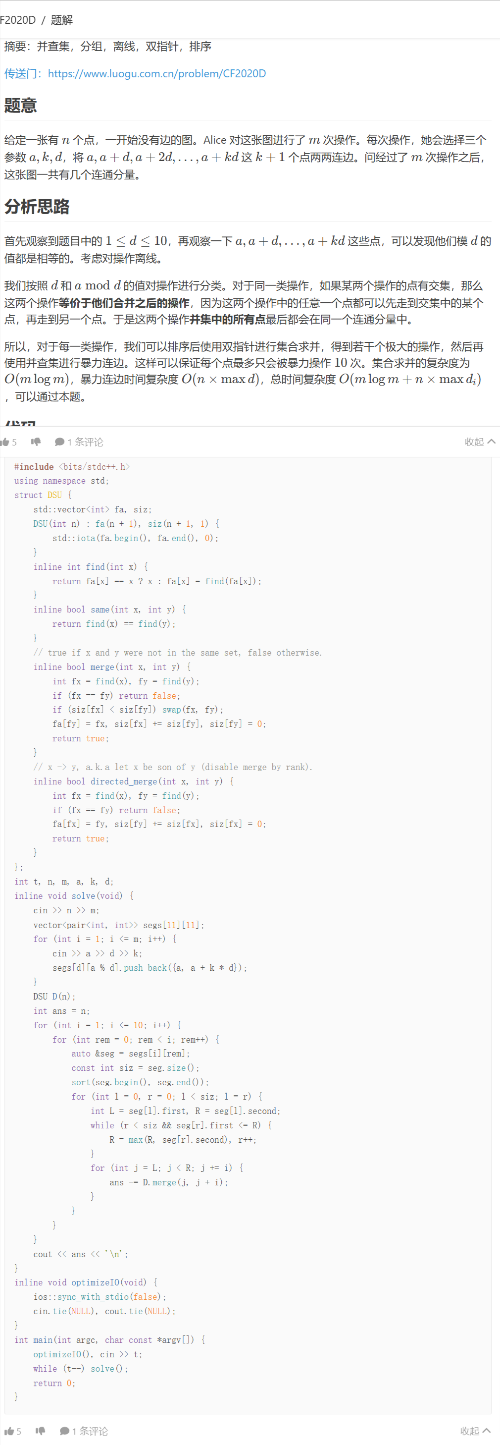 思路:并查集加合并区间,然后发现一个大佬的并查集板子很好