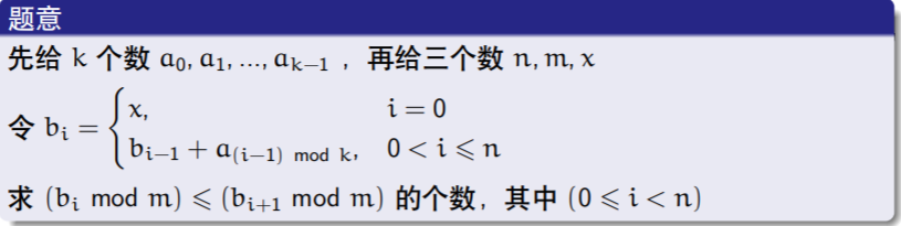 即bi mod m>bi+1 mod m的个数。最后用b数组总个数n减去这个长度就是满足的个数。在数组中要满足bi mod m<=bi+1 mod m