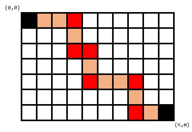 那么如何统计答案呢?由转移的过程不难想到统计答案时需要枚举 \(dp(n,m+1,?,?)\),枚举 \(k,p\) 即可。