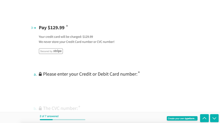 而这个链接,是Typeform + Stripe,实现了“带有支付功能的调查问卷”。同样也不需要写代 码。