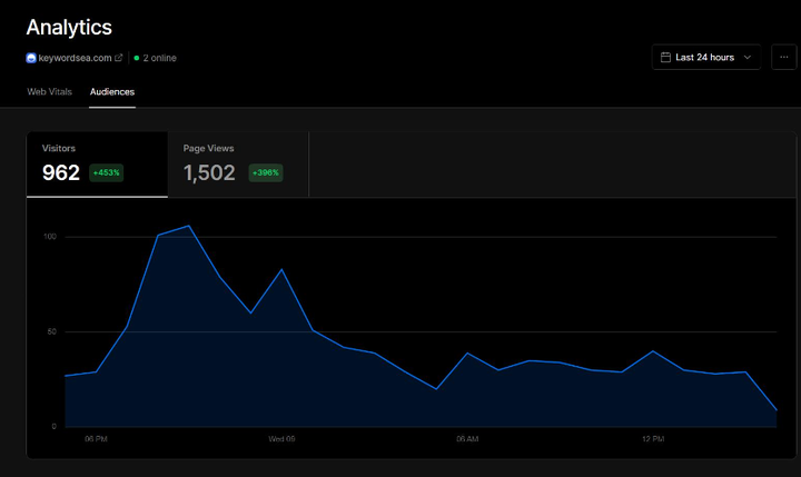 上线首日数据: 962名访客。ProductHunt带来了200多的流量,其他700多为用户自传播。