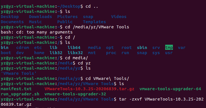 虚拟机->重新安装VMware Tools/安装VMware Tools