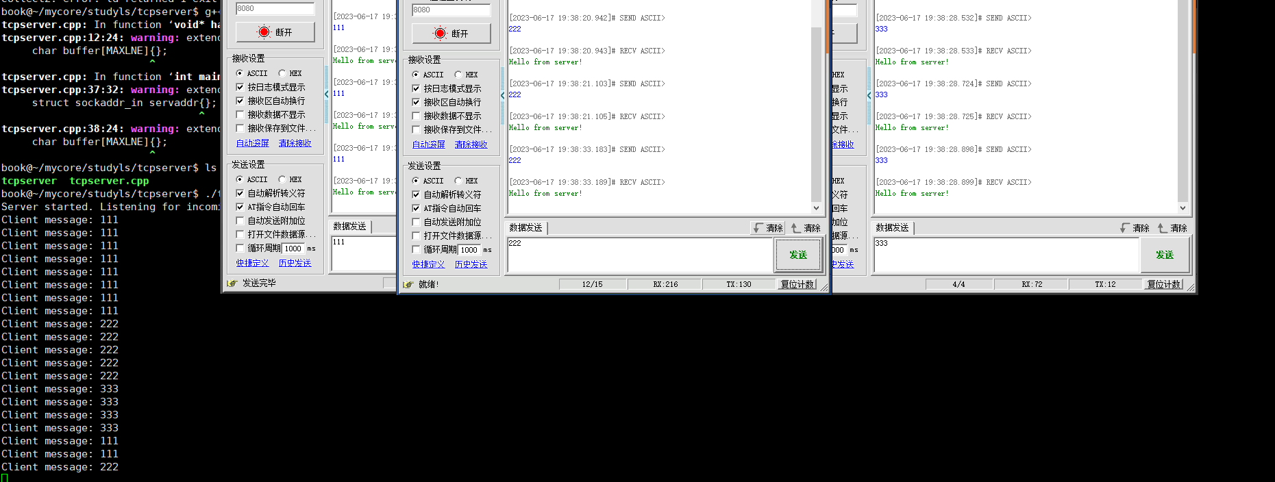 可以看到,多个客户端同时连接访问,并发送接收消息都是没问题的。