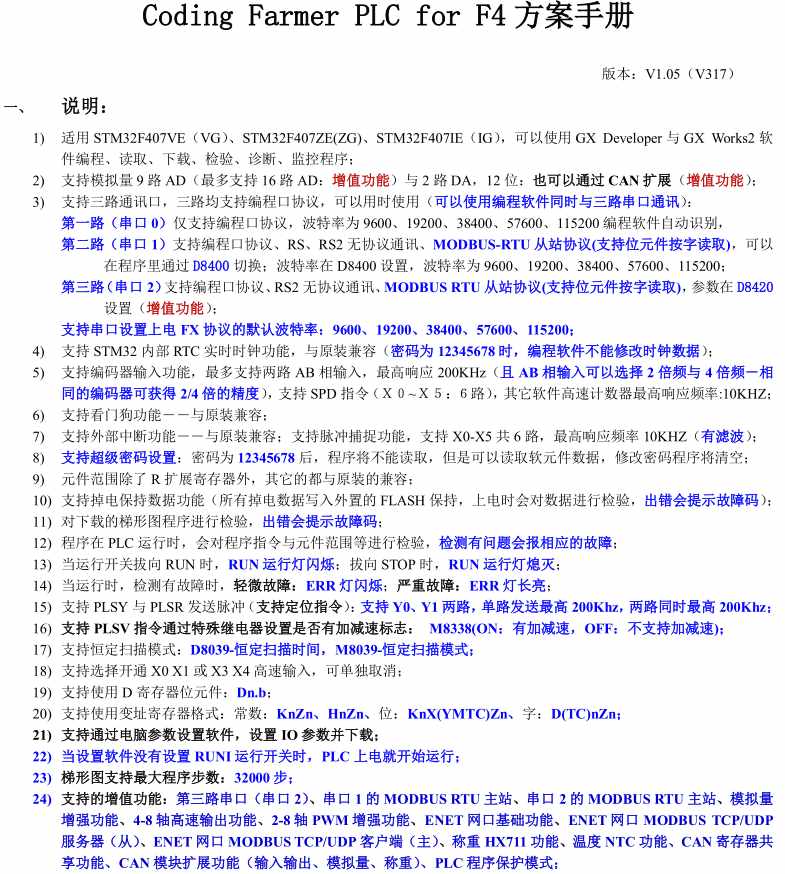 STM32F407 兼容FX3U PLC方案 STM32F407兼容三菱FX3U的方案。