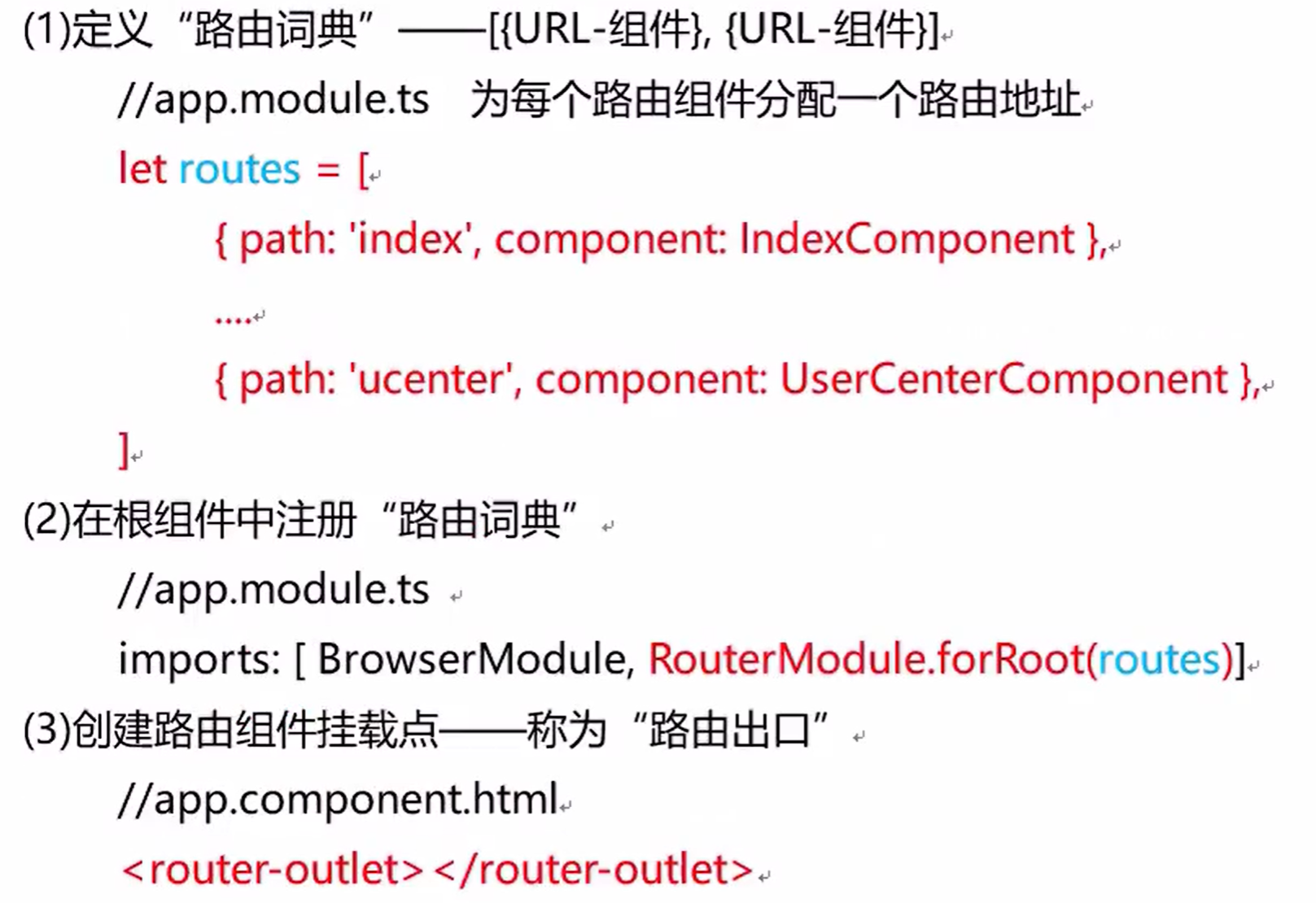 ③、路由词典中每个路由要嘛指定component,要嘛指定redirectTo,同时需要指定路由匹配方式pathMatch。