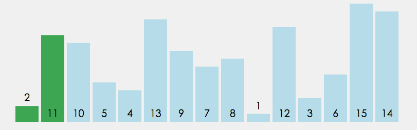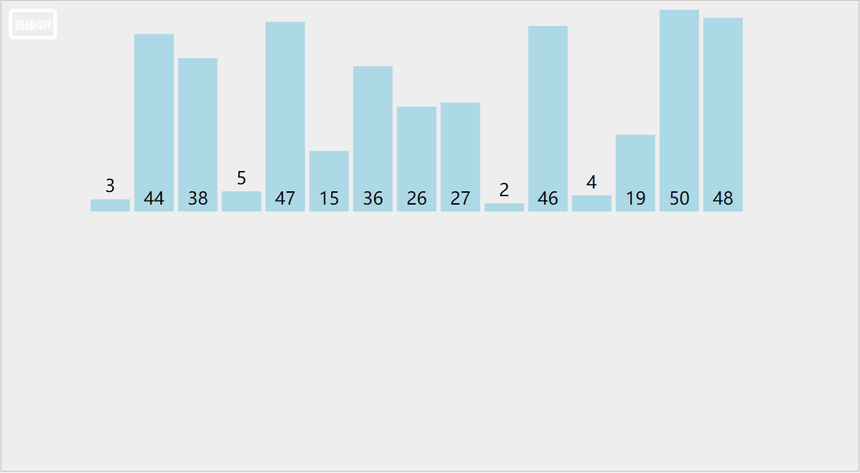 选择排序(Selection sort)是一种比较简单的排序方式,工作原理是:从待排序的数据中找到,最小(或最大)的数据,将其放在第一个位置;再从剩下的待排序的数据中找到最小(或最大)的数据,将其放在这些数据的第一个位置;直到待排序的数据为零。