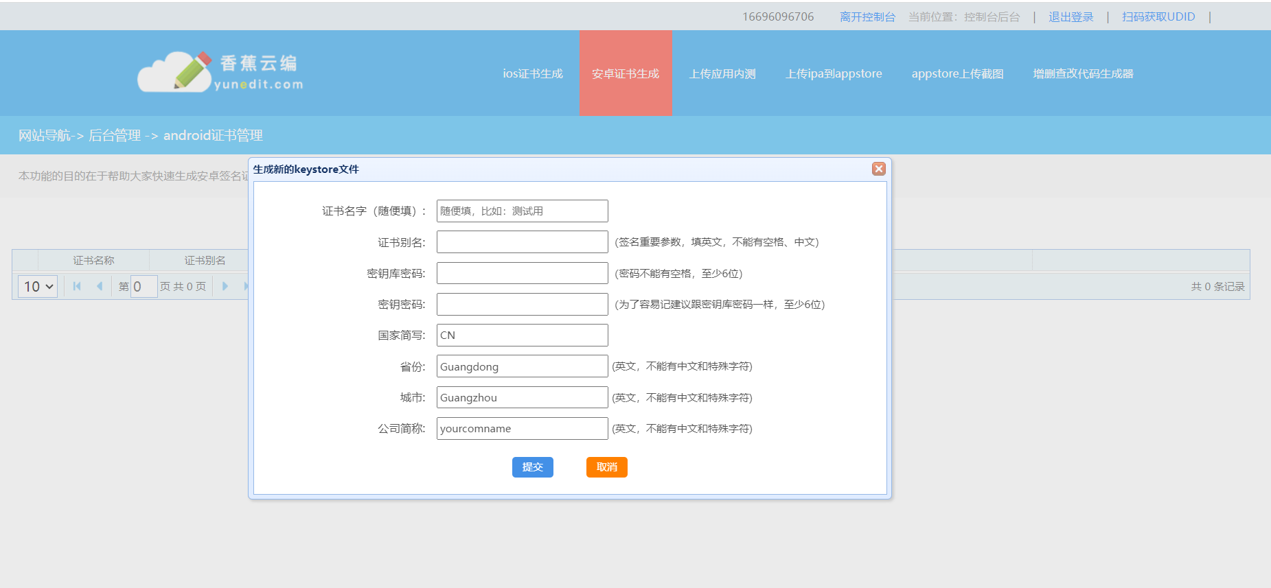 可以通过https://www.yunedit.com/香蕉云编,非常方便。进入后点击安卓证书生成,填写完点击下载保存就可以了