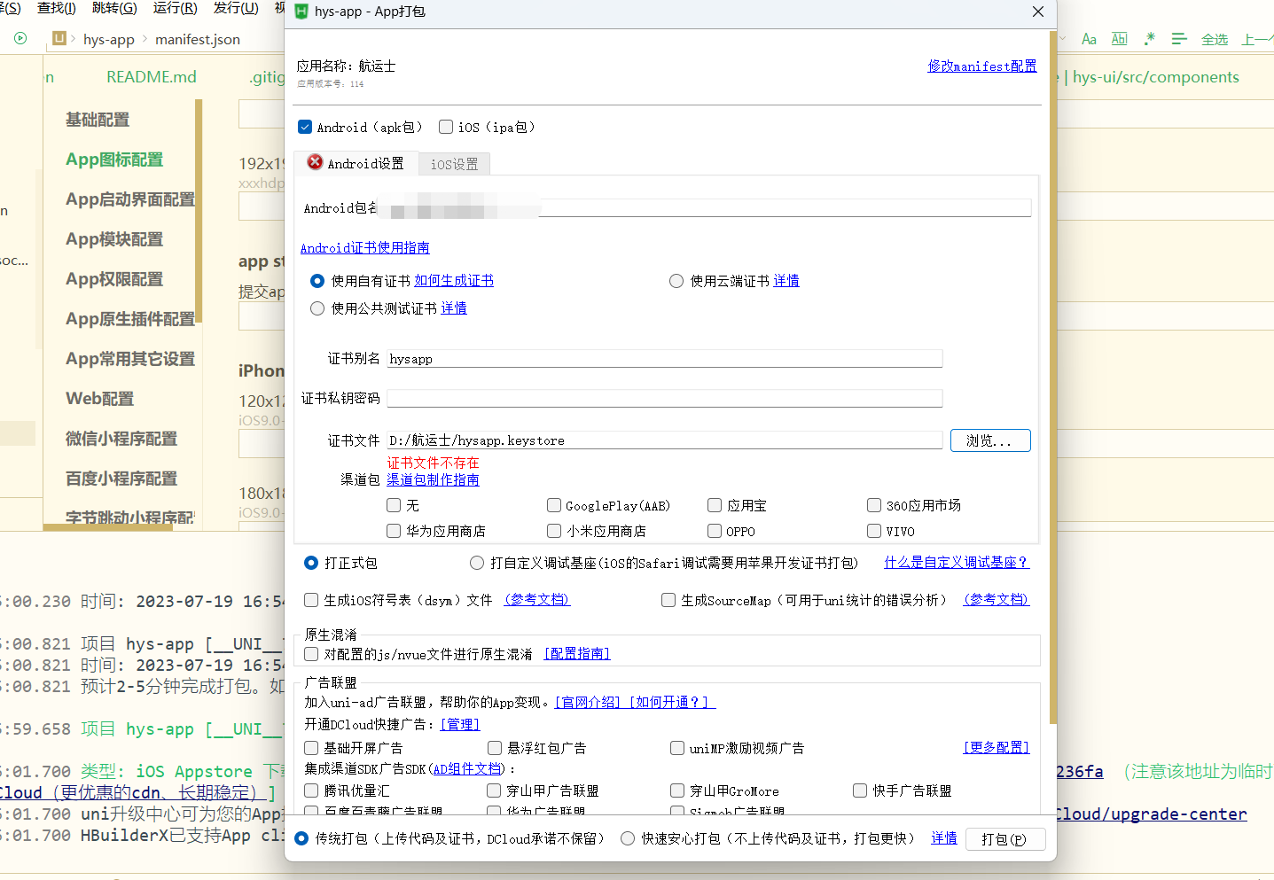 1.生成安卓包所需要的keystore文件
