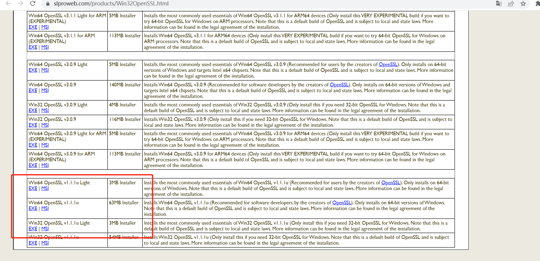 2.1.先安装 OpenSSL,如果您还没有安装 OpenSSL,请先下载并安装它。您可以从以下链接获取 OpenSSL 的 Windows 版本:https://slproweb.com/products/Win32OpenSSL.html,这里有1.0版本和 3.0版本,