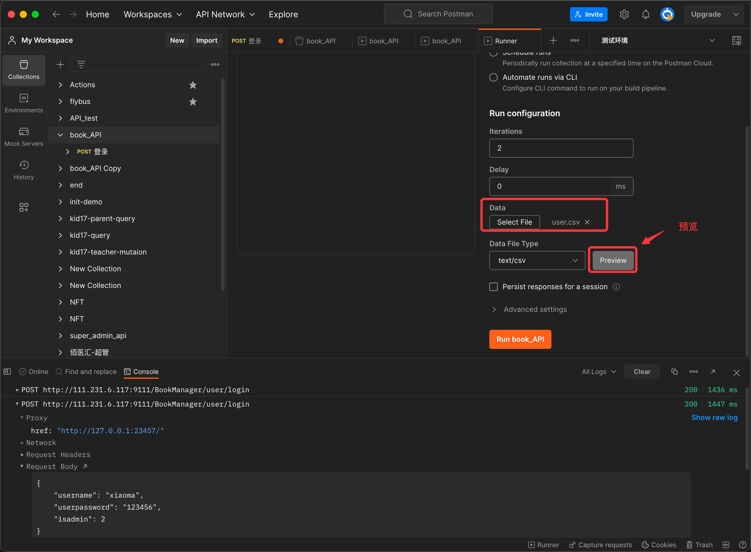 - 不能测试 bool 类型。因为 postman 读取 csv后,将所有非数值类型数据,自动添加 ”“ 变为字符串