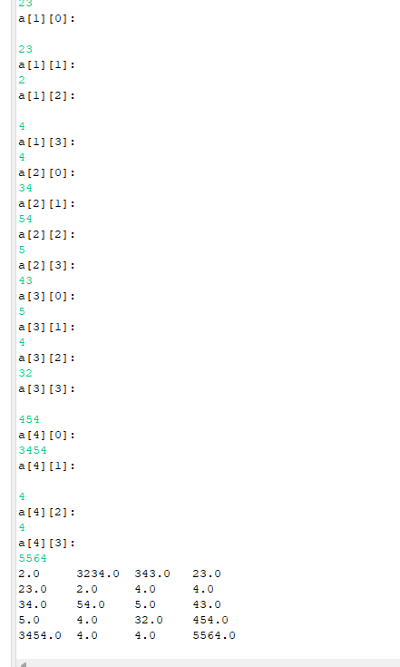 // 2、 输出一个double型二维数组(长度分别为5、4,值自己设定)的值。