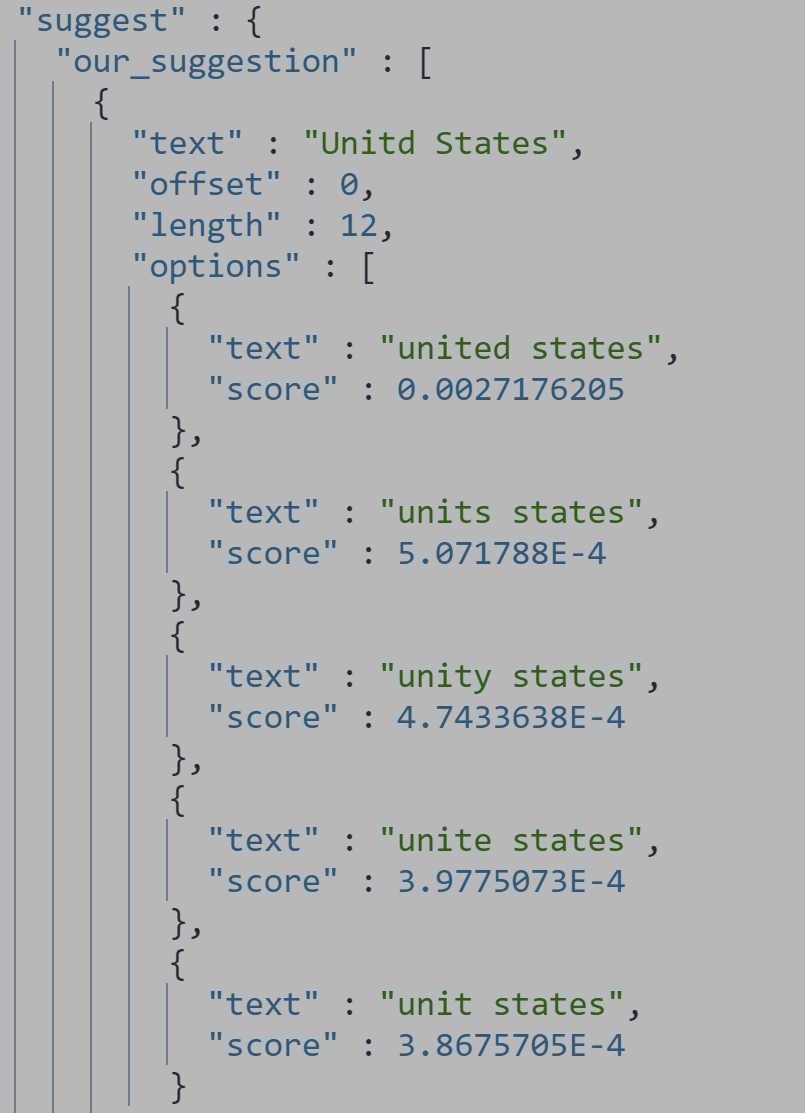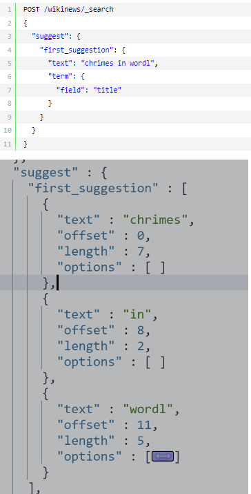 term suggester 基于编辑距离来运作,这意味着,增删改某些字符串转化为原词的改动越少,这个建议词就越有可能是最佳选择。拿worl和work举例,距离worl转化为work,改动了一个字符,