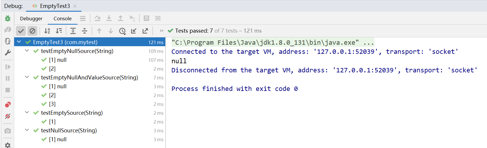 - 需要 null 和空都进行参数化,使用 @NullAndEmptySource 注解