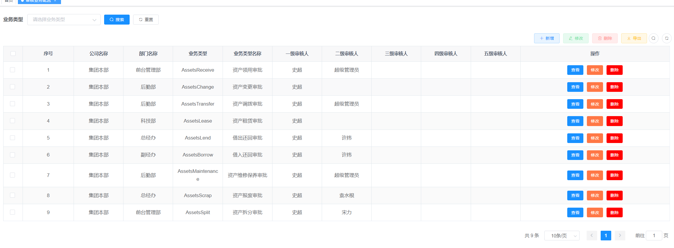 1.首先,创建五级审核人表(最多五级),对各个业务类型,部门分配对应的审核人