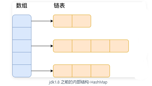 JDK1.8 之前 HashMap 底层是 数组和链表 结合在一起使用也就是 链表散列。