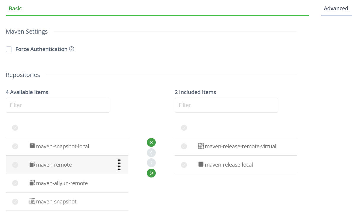 (1) 创建maven-release-remote-virtual,将阿里云和Maven中央库的远程库聚合起来: