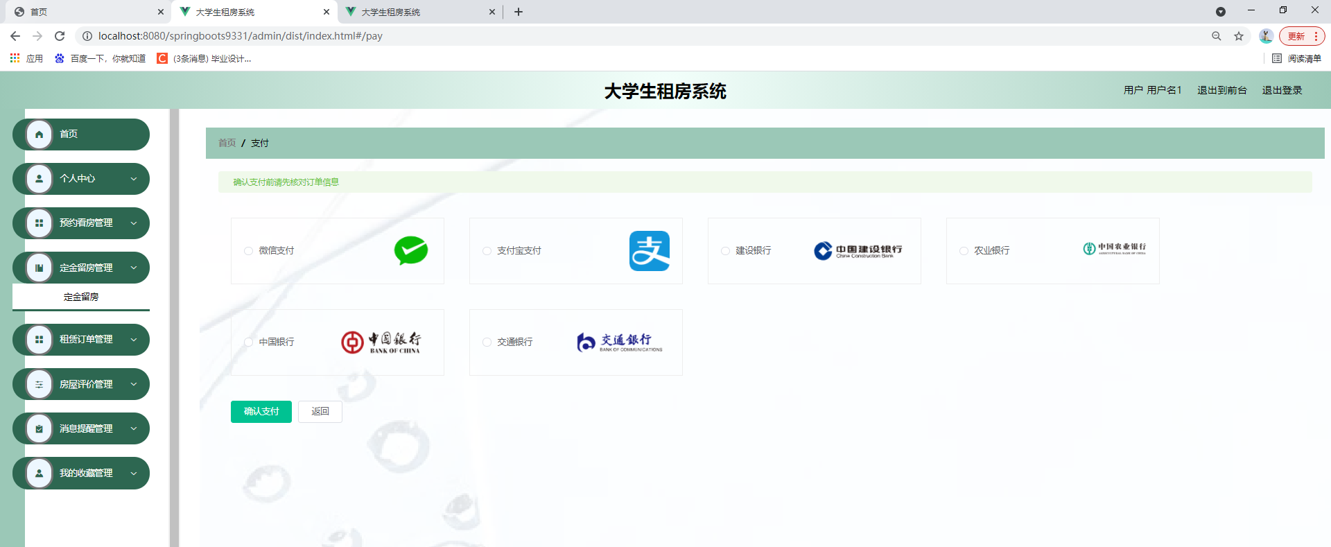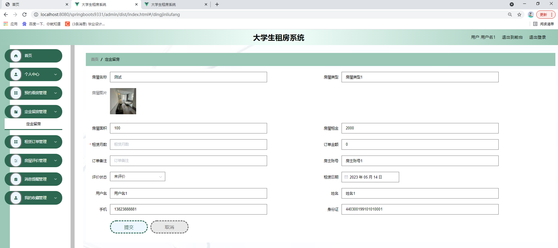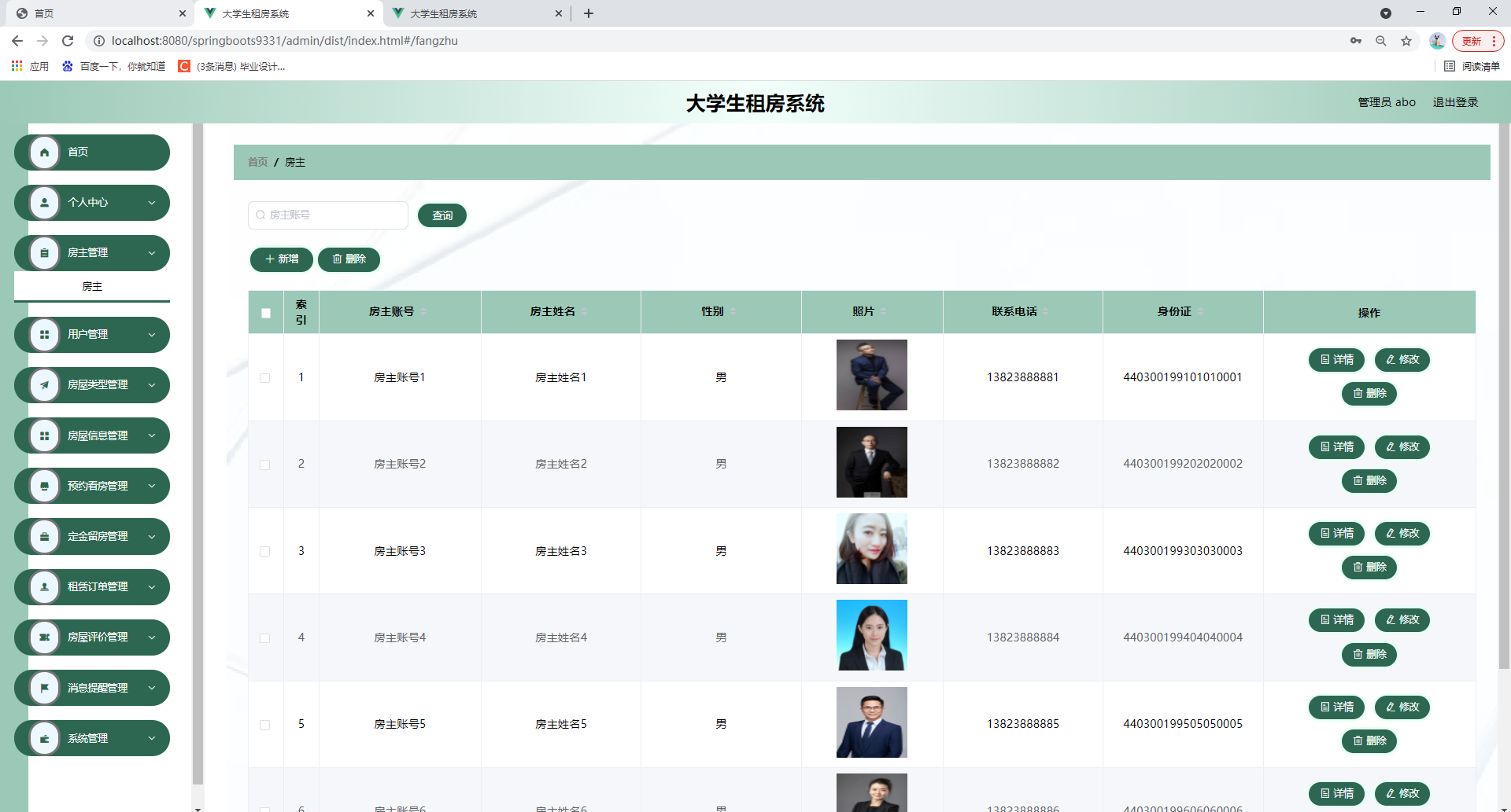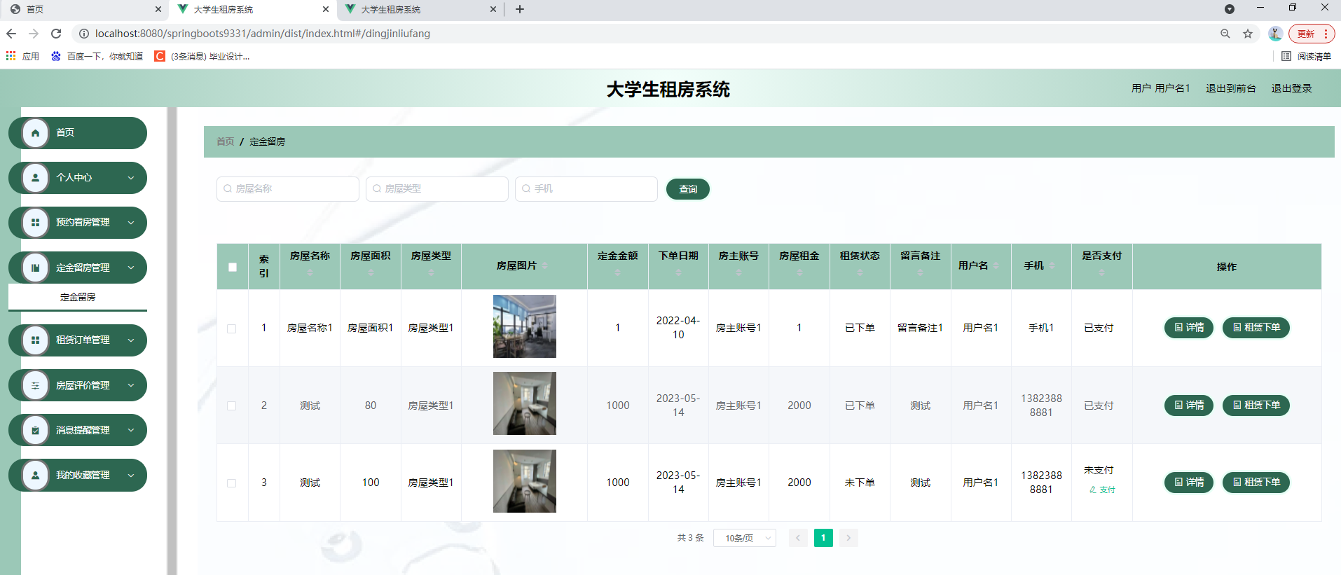 后台主要是管理员,房主和用户,主要功能包括首页,个人中心,房主管理,用户管理,房屋类型管理,房屋信息管理,预约看房管理,定金留房管理,租赁订单管理,房屋评价管理等。