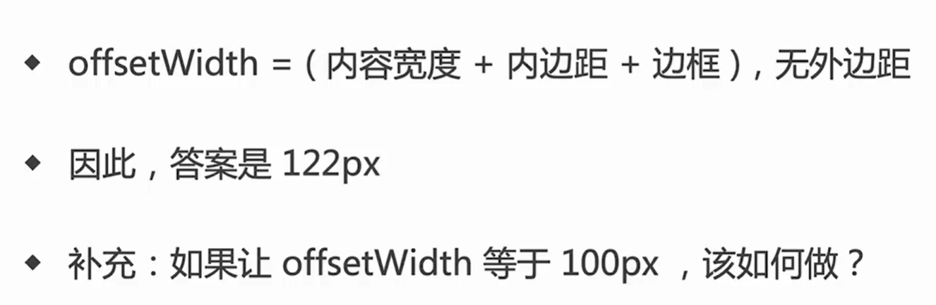 offsetWidth 是一个 JavaScript 属性,用来获取元素的布局宽度。它包括元素的 内容宽度、内边距(padding) 和 边框(border),但不包括 外边距(margin)。