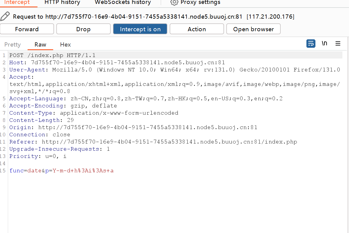 并且发现页面中有2024-10-24 03:55:59 am,判断执行了date函数,根据func和p的形式猜测函数执行,func输入函数,p输入语句