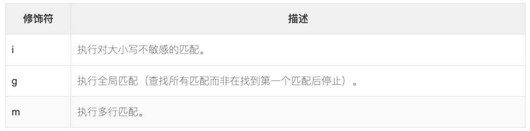 正则修饰符:配合正则表达式使用,用来对正则规则进行补充说明。