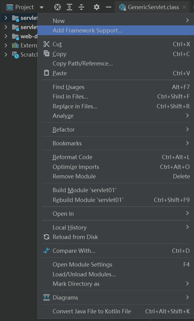 在 Module 上点击右键:Add Framework Support...(添加框架支持)