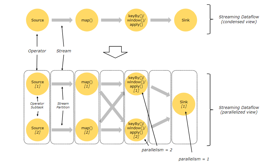 基于Flink开发的程序都能够映射成一个Dataflows。