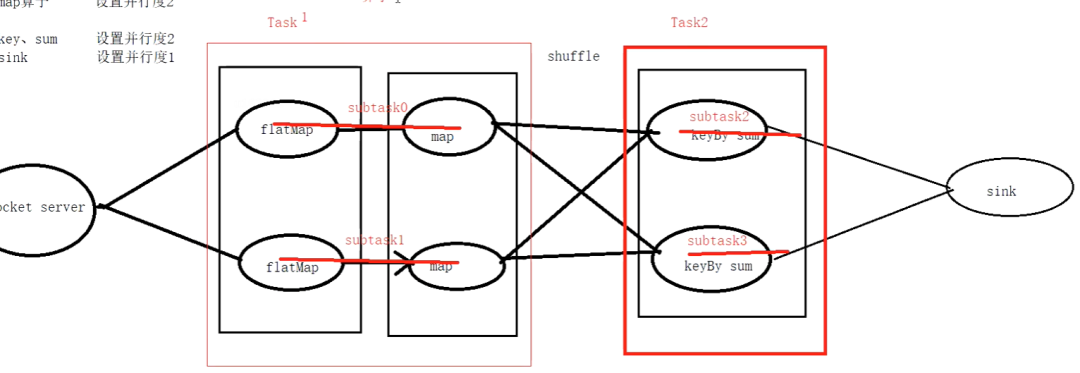 注意:rescale发生的是本地数据传输,而不需要通过网络传输数据,比如taskmanager的槽数。简单来说,上游的数据只会发送给本TaskManager中的下游。
