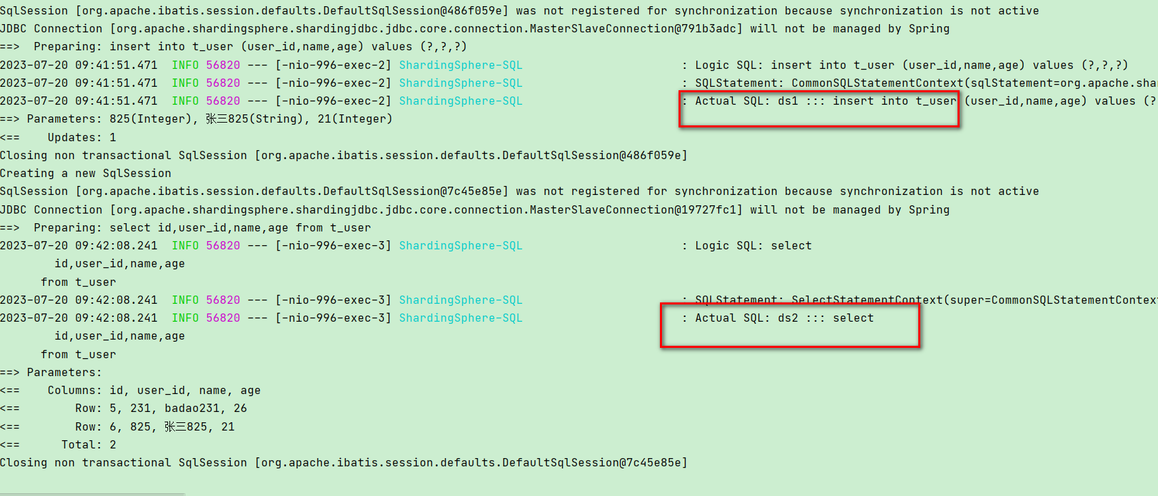 @RequestMapping("findMasterAll") public String findMasterAll() { // 强制路由主库 HintManager.getInstance().setMasterRouteOnly(); List<User> all = userService.findAll(); return all.toString(); }