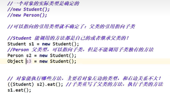 2、父类和子类,父类可以转换成子类,否则可能出现类型转换异常ClassCastException。子类转换为父类,低转高自动转换,可能丢失自己本来的方法。父类转换子类,高转低强制转换。