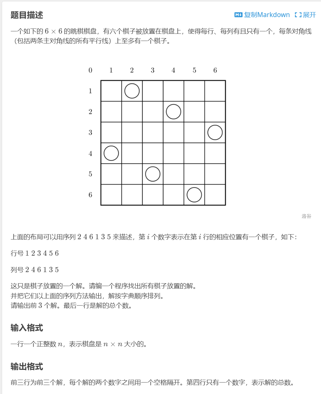 题目连接:P1219 [USACO1.5] 八皇后 Checker Challenge - 洛谷 | 计算机科学教育新生态 (luogu.com.cn)