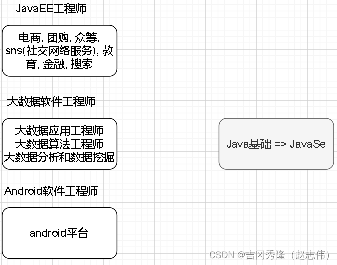 - 支持面向桌面级应用 (如Windows下的应用程序) 的Java平台, 提供了完整的Java核心API, 此版本以前成为J2SE.