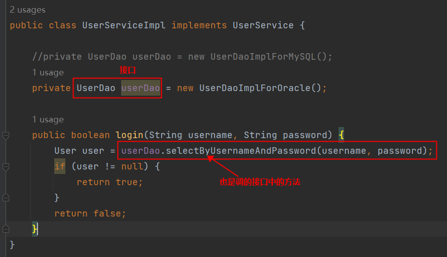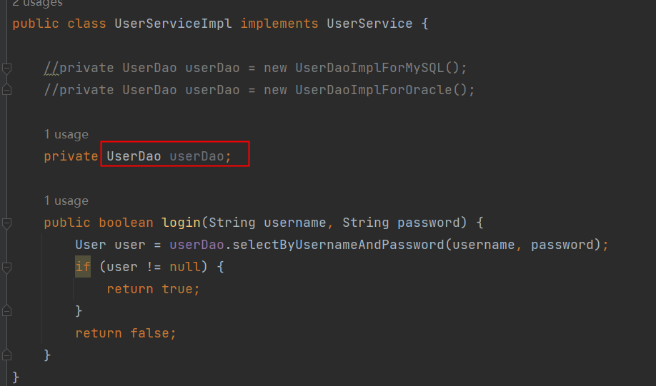 //private UserDao userDao = new UserDaoImplForMySQL();