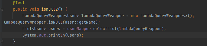 判空查询isNull方法查询为空的字段信息,isNotNull方法查询属性不为空的字段信息