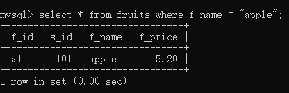 select * from fruits where f_name = 'apple';//将名为apple的记录的所有信息都查询出来