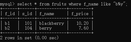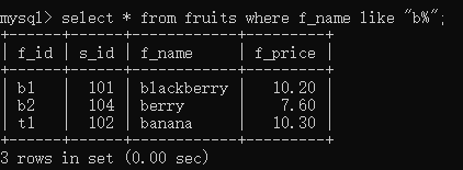 select * from fruits where f_name like 'b%';//f_name以b字母开头的所有记录