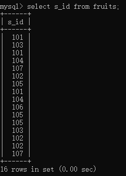 select s_id from fruits;//查询所有的s_id,会出现很多重复的值