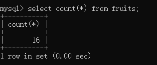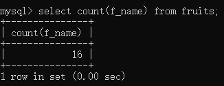 select count(f_name) from fruits;//查询fruits表中f_name字段名下有多少个行数(不包含有空值的行)