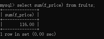 select sum(f_price) from fruits;//这个没有实际意义,只是测试sum()函数有求总和的能力