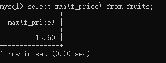 -- 4.max()函数-- max()返回指定列中的最大值select max(f_price) from fruits;