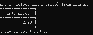 -- 5.min()函数-- min()返回查询列中的最小值select min(f_price) from fruits;