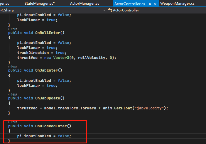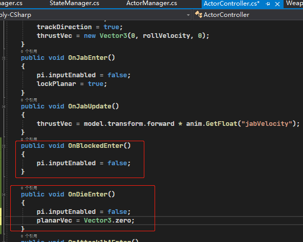 在下面新创建一个函数Blocked(),触发Blocked动画。