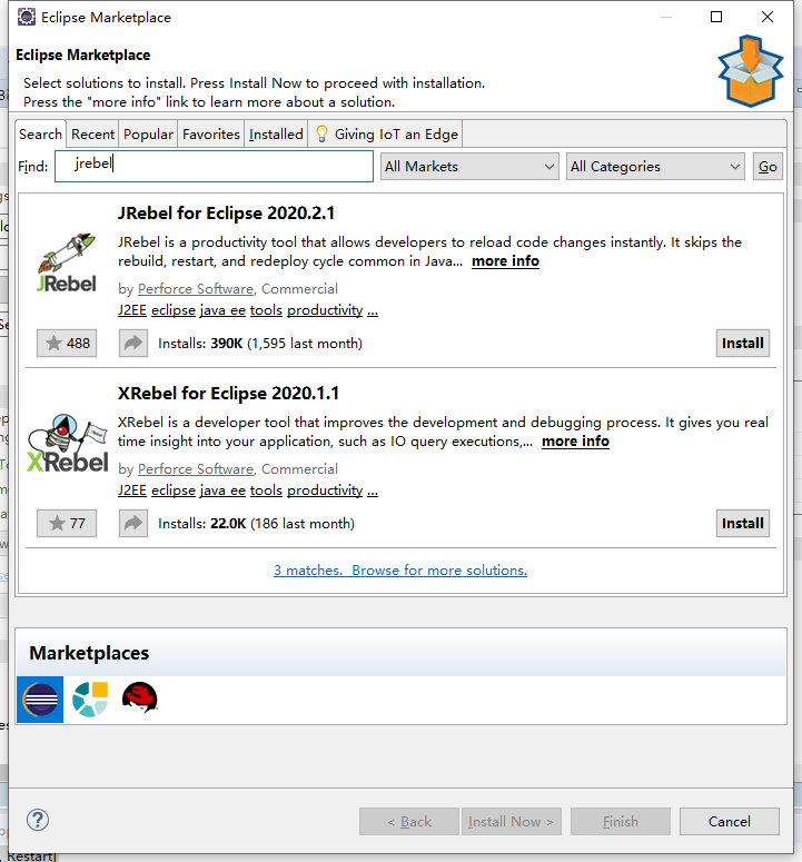搜索jrebel点击install