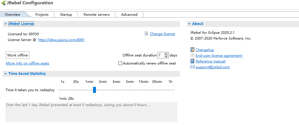2.修改eclipse上的JRebel的配置