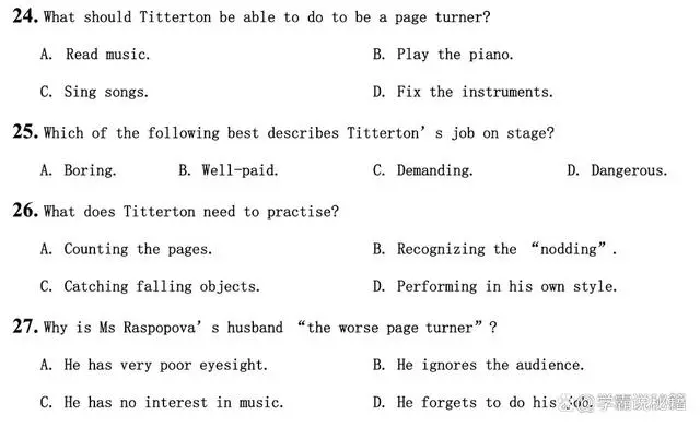 25题:看到 describes Titter ton’s job on stage 这就是词汇的考察,一方面考察词汇量,一方面考察对于文章大意的概括和判断能力。