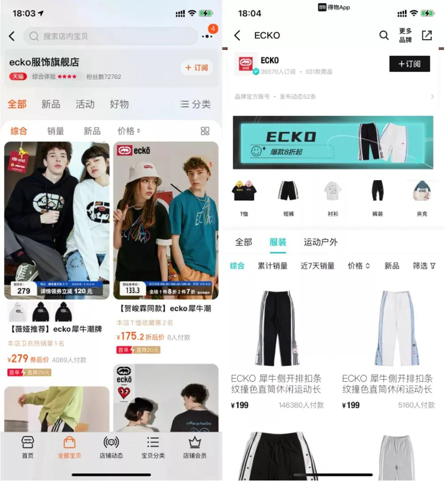 得物所做的这些努力带来了积极的效果,它的客单价高达1500元左右,但转化效率很高。潮流品牌ECKO虽然在天猫上的业绩一般,但它在得物可以做到上亿GMV,得物平台业绩占比线上销售额近一半。