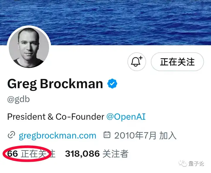 点击“66 正在关注”,可以看到Greg关注的66个账号。