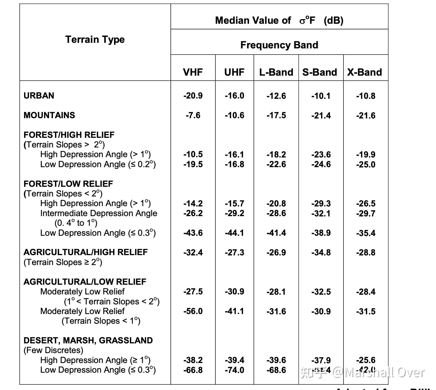 Land Clutter Backscatter vs. Terrain Type and Frequency:
