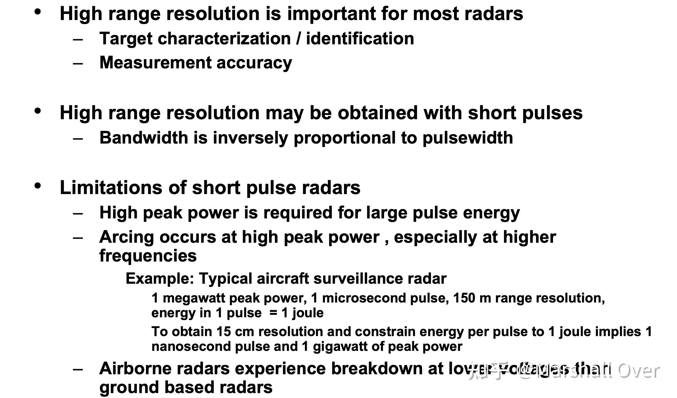 Pulse Width, Bandwidth and Resolution for a Square Pulse:Shorter Pulses have Higher Bandwidth and Better Resolution。